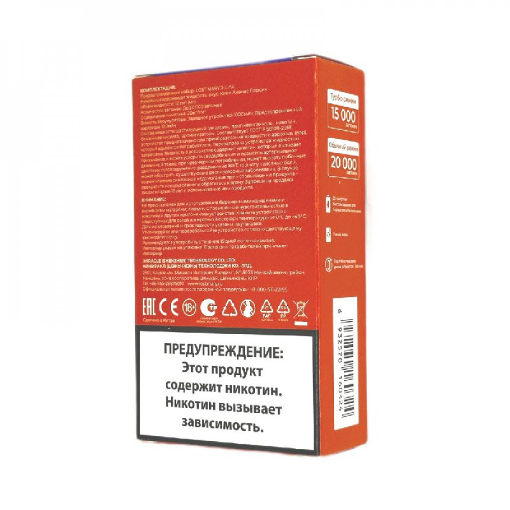 На складе Код товара: Lost Mary X-Link 20000 - Киви Маракуйя Гуава