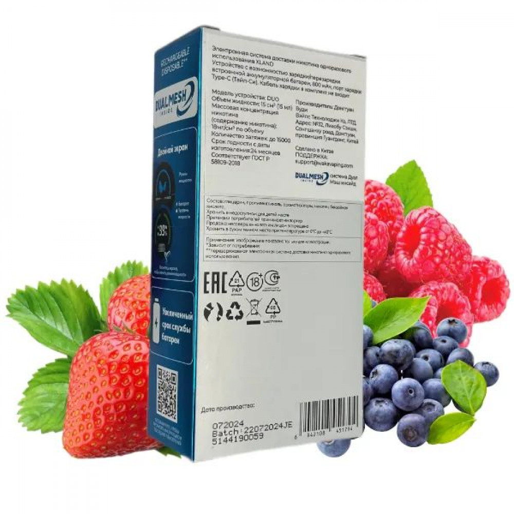 Аромат/вкусТройная ягода | БрендWAKA | ДисплейLed |